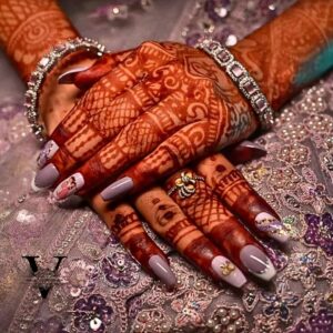 Nail extensions, gel polish, and creative nail art to give your hands a refined, elegant, and graceful look that complements your bridal jewelry and mehendi.