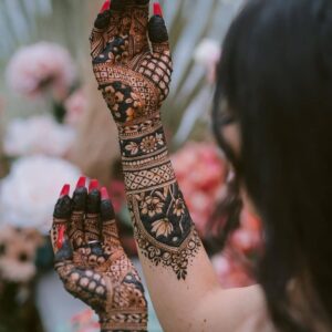 Traditional and contemporary henna designs applied to hands and feet, carefully crafted to perfectly match your outfit and style preferences.