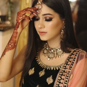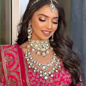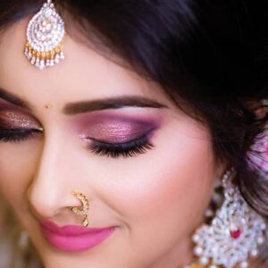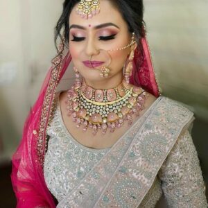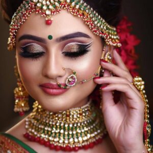 Customized makeup designed to enhance the bride’s natural beauty while ensuring a flawless, long-lasting finish that looks perfect in photographs during the wedding day.